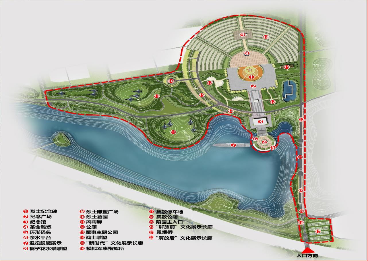 建設(shè)內(nèi)容:紀(jì)念館、烈士墓區(qū)、軍事主題公園。占地77000平方米,約408.2畝。